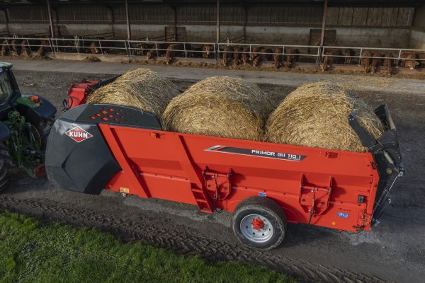 The compact working height and high carrying capacity of the latest Primor straw bedding and feeding machine from Kuhn Farm Machinery will appeal to farms with restricted height sheds.