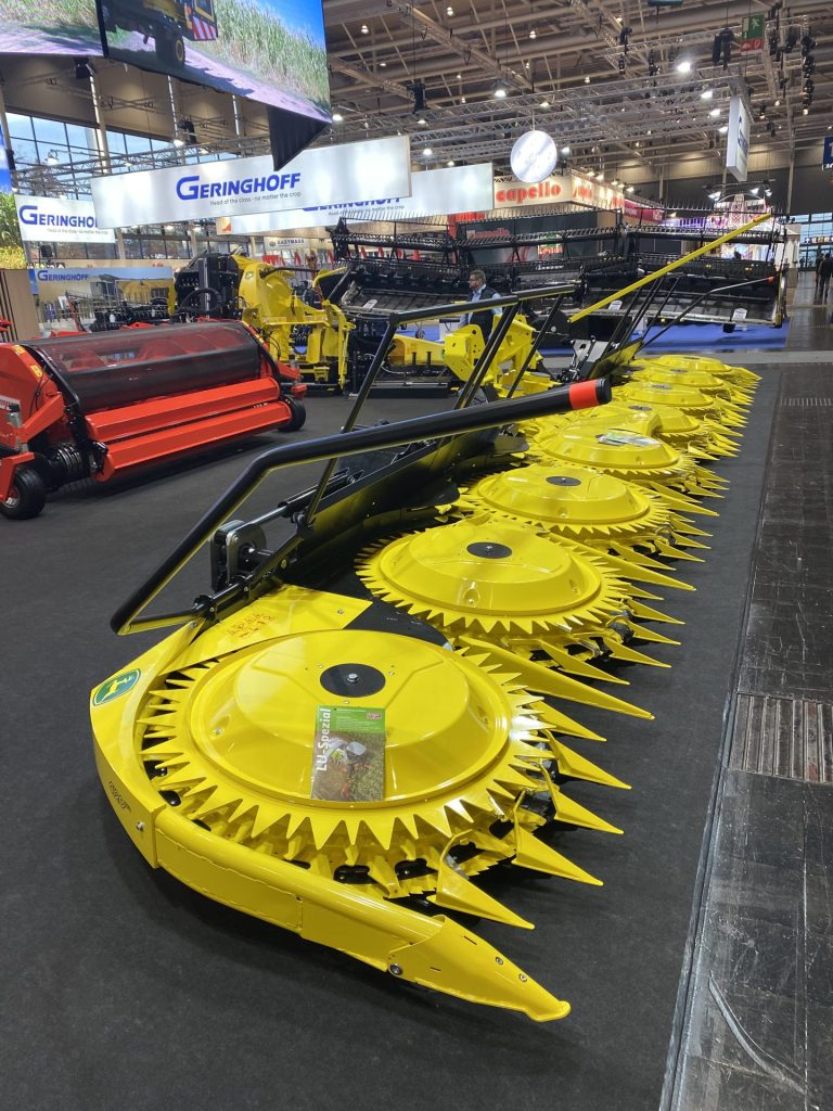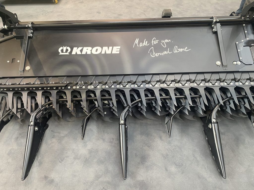 The Krone unit is on a special one-off full black version of the Big X 1180, signed by Bernard Krone. The German company confirms that the 14-row XCollect will be out next year and on sale from 2027, but we are unlikely to see the 16-row version until the next generation of wide-bodied Big X is released. They won’t say when this could be.