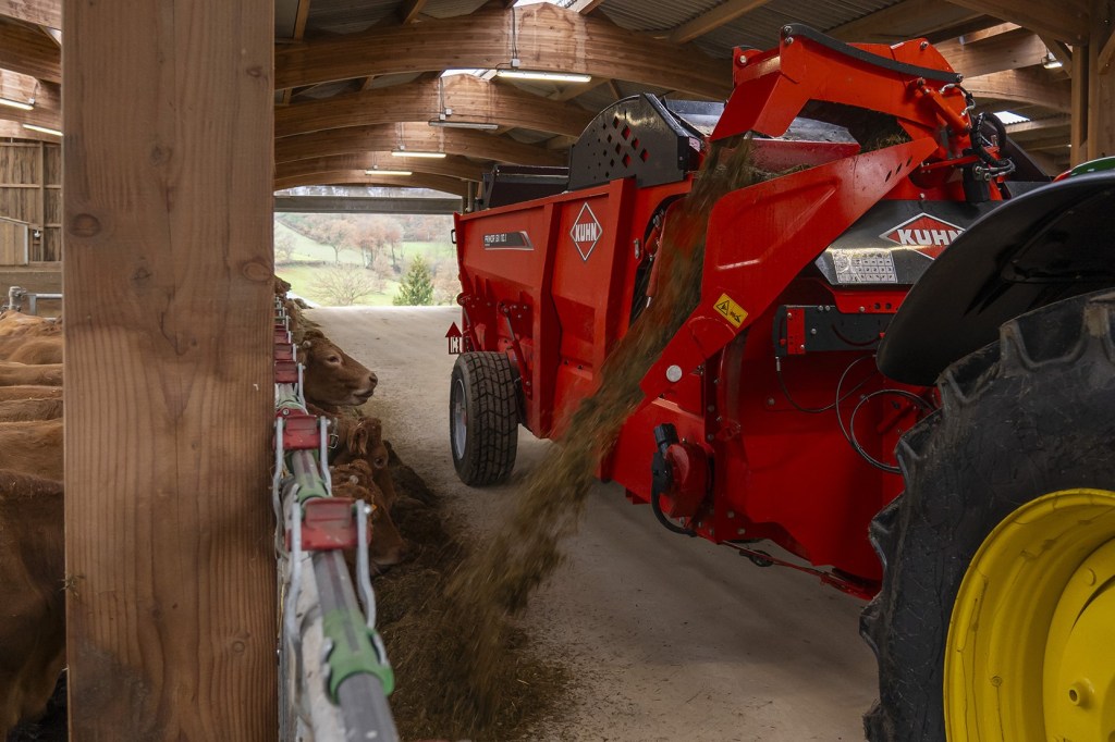 The compact working height and high carrying capacity of the latest Primor straw bedding and feeding machine from Kuhn Farm Machinery will appeal to farms with restricted height sheds.