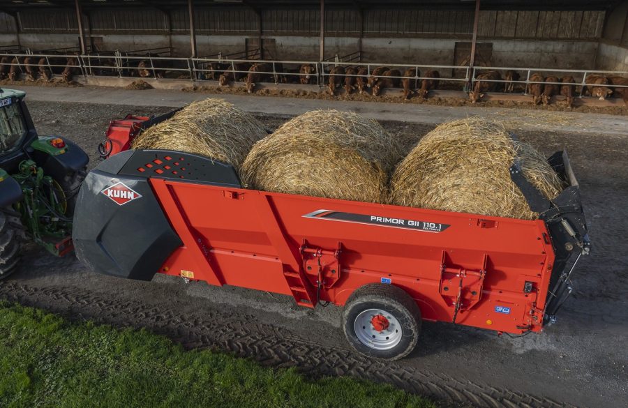 The compact working height and high carrying capacity of the latest Primor straw bedding and feeding machine from Kuhn Farm Machinery will appeal to farms with restricted height sheds.