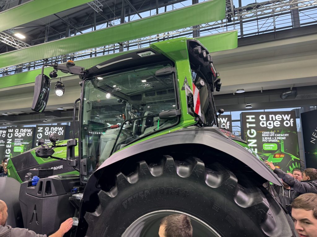 It isn’t a Deutz powering the Deutz-Fahr, there is an FPT 6.7-litre lurking below the bonnet supplying the respective 313hp and 340hp. But Graham Barnwell from SDF UK and Ireland says they have put their own stamp on the engine which is partnered with a ZF stepless TMT 32 transmission. For instance it has an electric variable geometry turbo.
