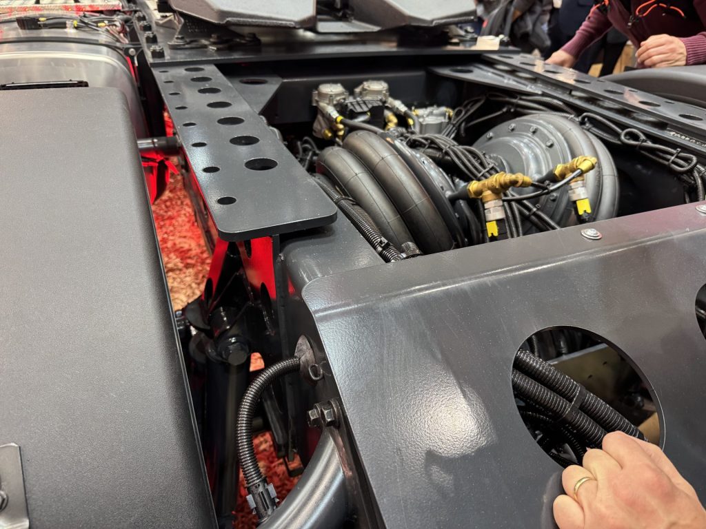 The cab is sourced from DAF, the engine is either an 11.0l or 13.6l Pacer with 330 or 390kW respectively. The transmission is a 12-speed ZF and the model on show was fitted with 445 front and 600 rear tyres. Price for the pictured model is in the region of €190,000 and there is currently no UK distributor but there are units working here.