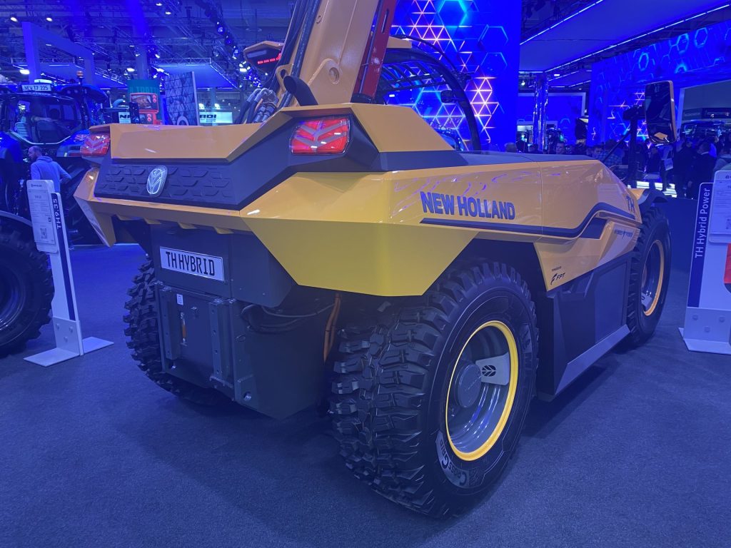 The TH Hybrid Power concept on New Holland’s Agritechnica stand is based on a TH7.40, but then with the diesel engine swapped for a fully electric drivetrain.