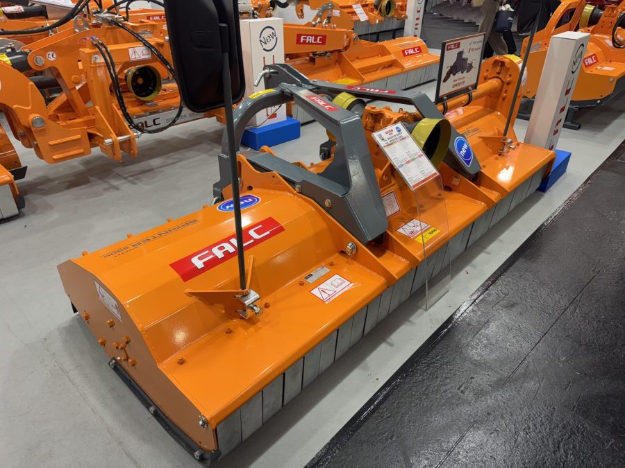 Falc was displaying a new triple flail mower setup with the front unit having a pull type headstock. This is said to allow better ground following.