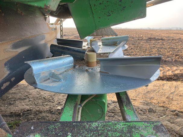 Developed over seven years, and initially tested on a Gustrower machine, the first set was sold in August 2022. Unlike most spreaders where the vane is mounted on a base plate and bolted to the disc, the spreading vane on the patent pending Duraflo systemslots through the disc and is secured by a locking nut.