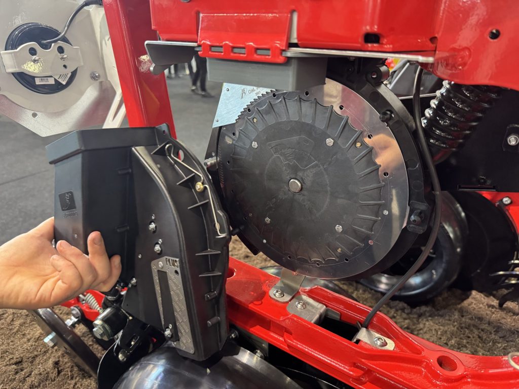 The Puro has a new coulter design with more downforce, up to 180kg per row unit. The gearbox has also changed for faster adjustment. Electric metering is something that is in the pipeline. The Puro will be built in Italy at the Matermacc plant which Pöttinger bought three years ago.