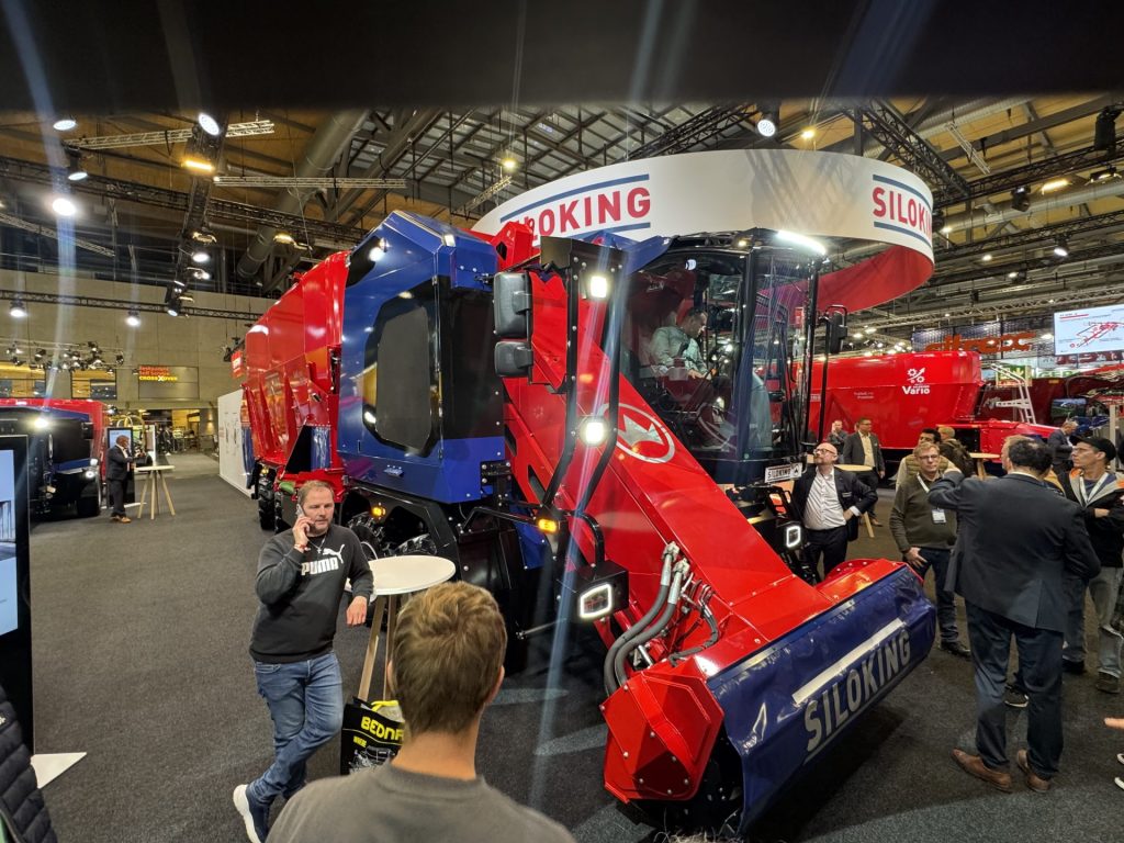 Up until now 32m3 was the largest capacity self-propelled from SiloKing, but this new model has a 45m3, triple auger hopper. Capable of feeding 320 cows per fill, it is aimed at farms with around 2,000 head and can do the math on the priced tag which is expected to be in the €500,000 region.