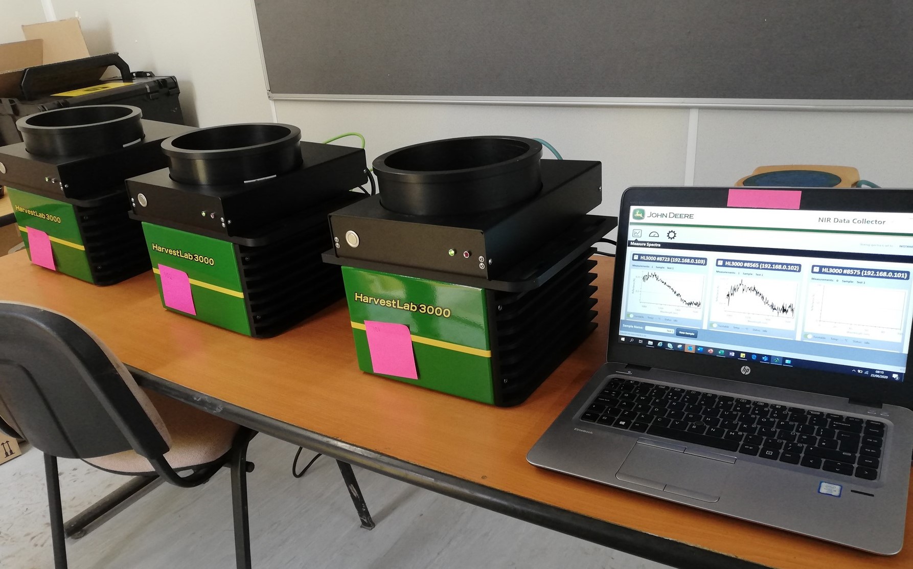 The HarvestLab 3000 NIR sensor can be removed from the forager chute and used for stationary analysis.