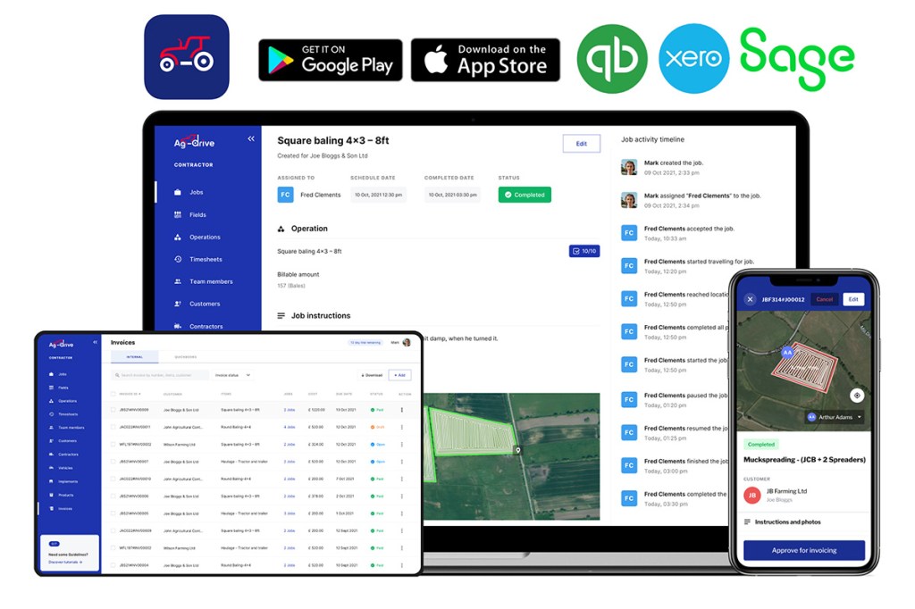Developed by contractor’s son Will Dunn, Ag-drive replaces paper diaries and timesheets with a simple, cloud-based system that manages everything from job planning to invoicing. Jobs and timesheet information can be recorded directly through the app and quickly invoiced via Xero, Sage, or QuickBooks, helping to reduce paperwork, minimise errors, and improve cash flow. All job records, time entries, and invoices are securely stored and accessible at any time from any mobile, tablet, or desktop.
