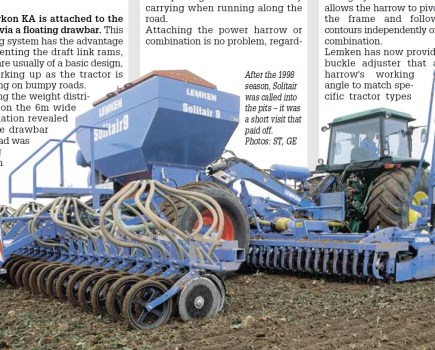 Combining several operations in a single pass the 12m Lemken Solitair ST is available with a choice of front tools for fitting ahead of the double disc coulters.