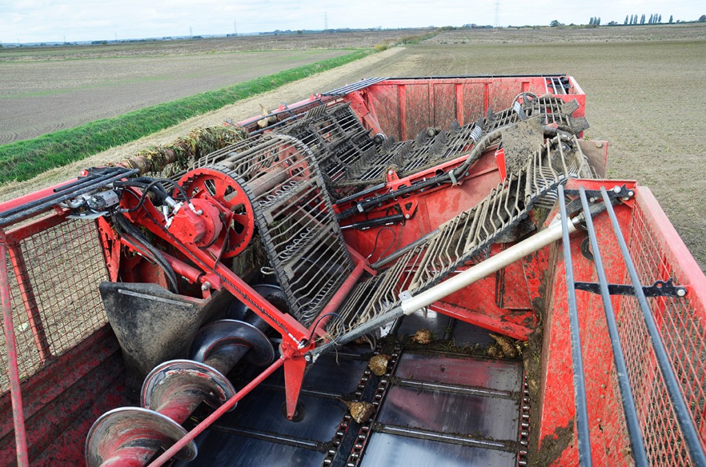 The transfer web is also worth mentioning. Richard stresses that the limiting factor with all sugar beet harvesters is how quickly you can get beet between the front wheels. “This is the bottleneck,” he adds. “The 900mm-wide transfer web is ideal and I normally run it at 50% of maximum speed even when working at speeds up to 8.0km/hr.”