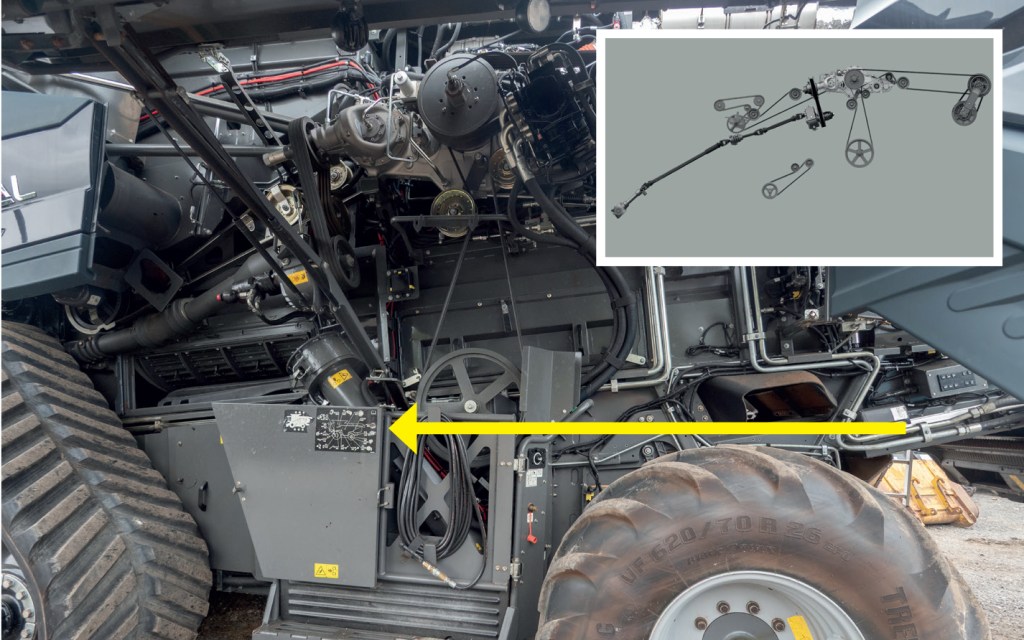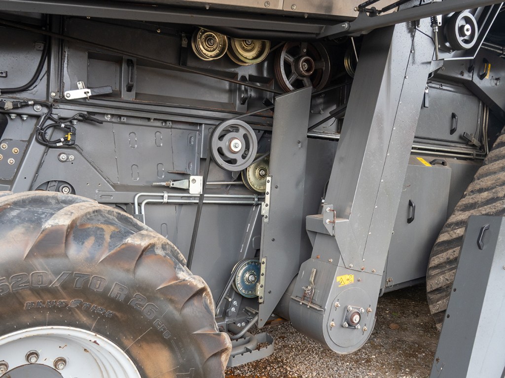 The grain elevator drive side on the right of the combine is relatively clutter free which makes looking this area over straightforward. Access covers will enable you to easily look further into the combine without the need for tools. The framework ledges on Ideal combines are angled to make these areas less prone to trapping debris (or a hiding spot for a forgotten spanner).