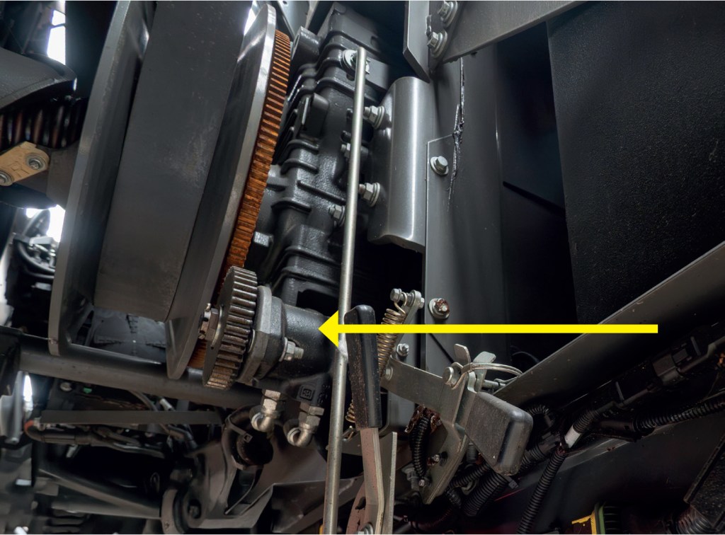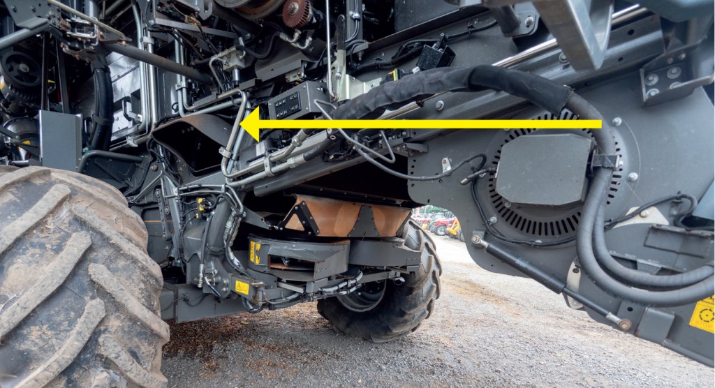 This gap ahead of the straw chopper is filled in on combines made from around 2023. Debris can accumulate in this area which can making working on the straw chopper a messy job. This now plugged gap has no impact upon the combine’s working ability.