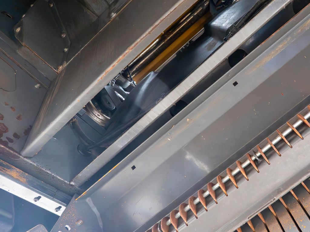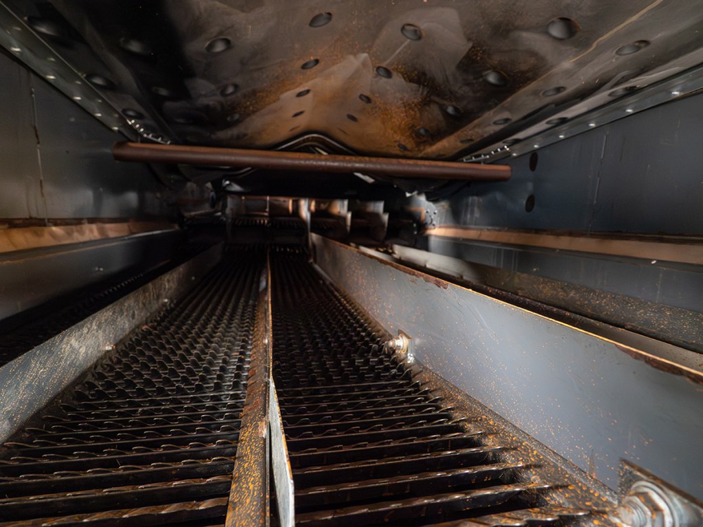 The sieves rubber bushed shaking system are difficult check but expect this area to be clean on a prepared used buy. Flaps on the underside of the combine open to speed up cleaning, external handles making them easy to open without having to crawl under the combine. On post 2023 models these handles are also used to close, as opposed to just release, the flaps to make the job even easier.