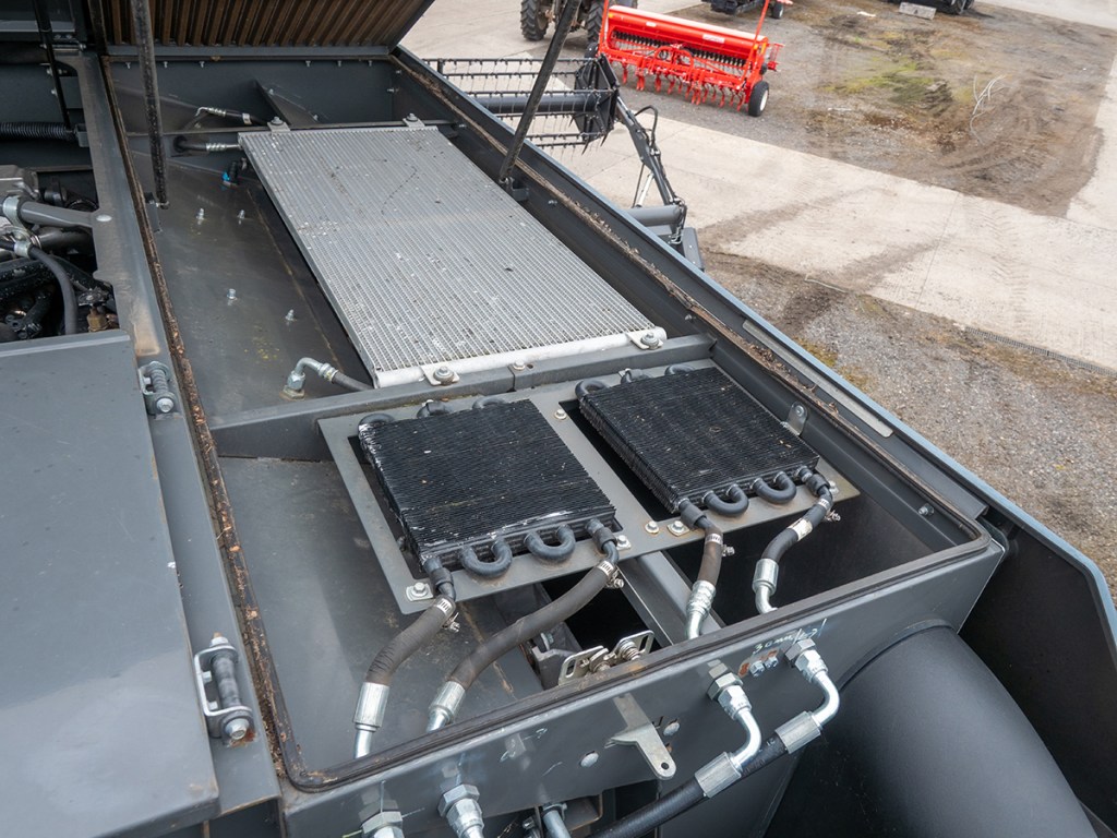When looking over the cooling pack you will note there is no evidence of a cleaning system, such as a rotary screen. Agco instead fit a reversible pitch engine fan, this automatically reversing air flow to actively blow the coolant pack clear of debris at fixed two minute intervals and when the unloading auger is used. When the air flow is reversed the system is also used to blow the air filter intake pipe clear of debris. This should prolong the life of the expensive air filter element.