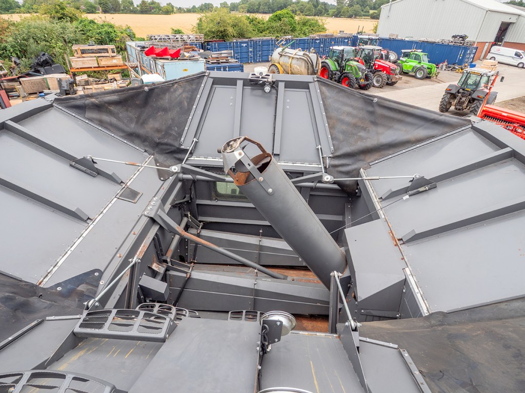 Not a lot to see in grain tank but take time to inspect the folding covers and the bubble up auger bearing for play. The grain unloading auger has the capacity to run at a rate of 210l/sec, gates in the hopper allowing the operator to reduce the rate of flow if necessary. The cross auger gate can also be closed when unloading to allow the auger to be emptied of grain. This will reduce the load on the engine when it next comes to emptying the tank and ensure the auger is empty if it is left extended.