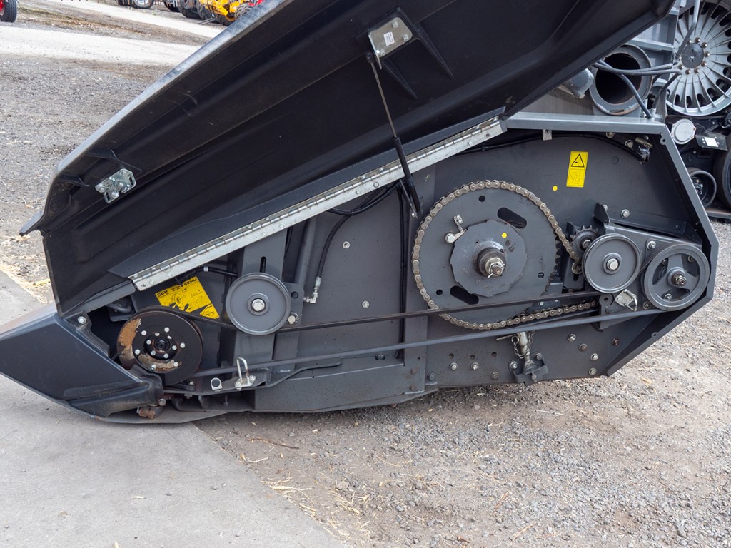 The drive on each side of a SuperFlow header has a chain to run the auger and belt drive rollers with the belt powering the Schumacher cutter bar. Rape side knives can be fitted.