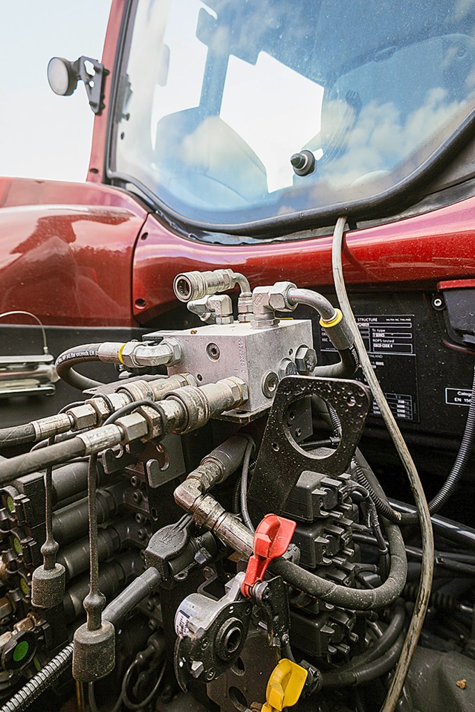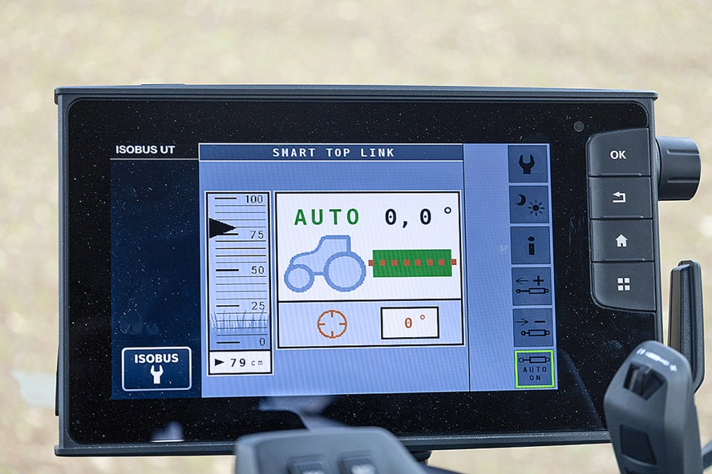 Downside of the design is that the top link can only be manually extended or retracted using the two buttons on the Smart Toplink page on the tractor’s screen rather than directly off the spool valve.