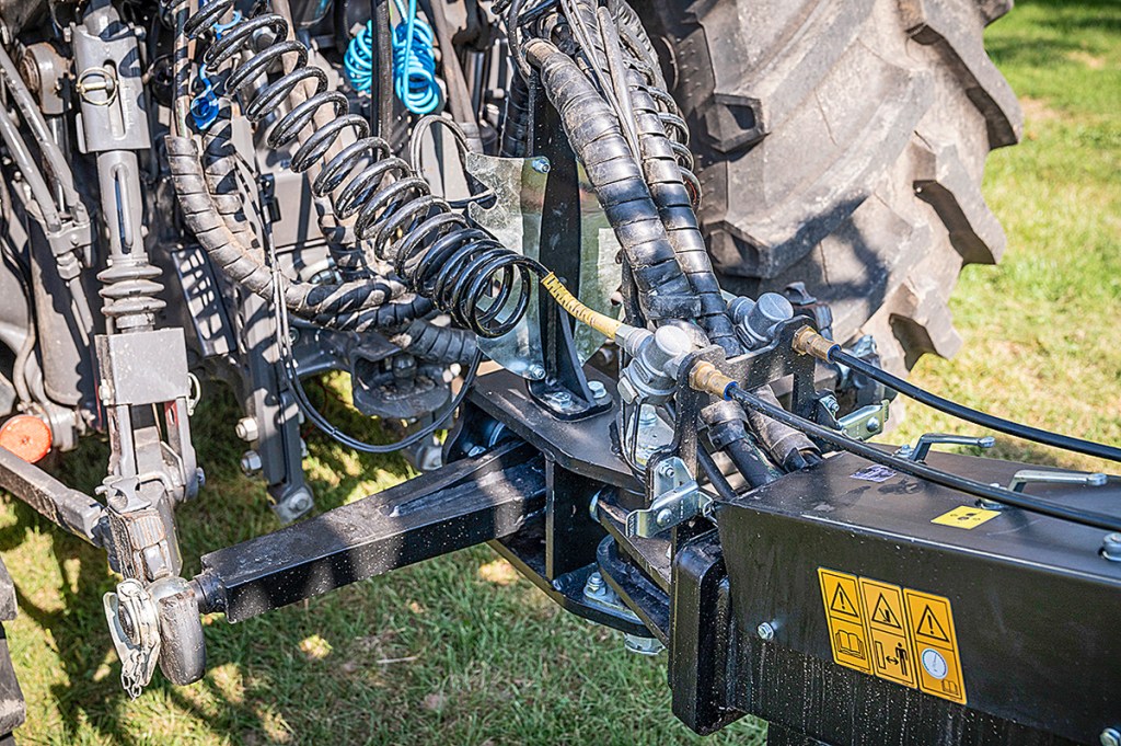 Back to our test and getting hitched up. It uses a Cat III lower link crossbar, but, when it didn’t marry up with our lift arm settings, we got the measuring tape out and found it was slightly wider than it should be. This minor design issue has now been fixed, and the headstock does still let you make tight, 90⁰ turns.