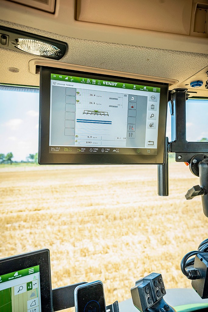 Our machine was fitted with a pair of €2,155 optional Alliance 710/50 R26.5 tyres. Larger tyre sizes are not available for this working width. Standard wheel size is a rather mean 500/45 R22.5. The drill can be aligned at the rear using spacers on the chassis cylinders and at the front via a top link. It is a set-up that works well. At the headland only the lift arms and the coulters are raised.