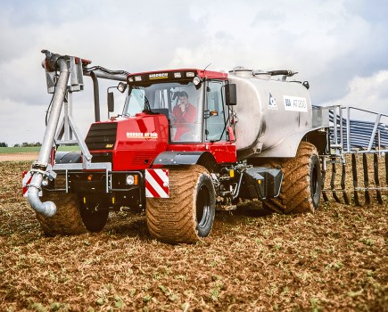 Proving that there are several ways to skin the proverbial cat, German firm BHE Agrotec has come up with a new auger-based slurry applicator, which dispenses the nutrient-laden liquid just above the ground. Called the Rohrverteiler Typ 900, which roughly translates as Pipe Applicator Type 900, the outer wings fold along the side flanks of the host tanker like gull wings on a sprayer. When you reach the field, the entire package swings back and then down onto the gauge wheels in the middle and on the sides of the machine. Supported by the wheels, the boom then ‘floats’ just above the ground. But, most importantly, can the slots dotted along the boom evenly distribute the slurry?
