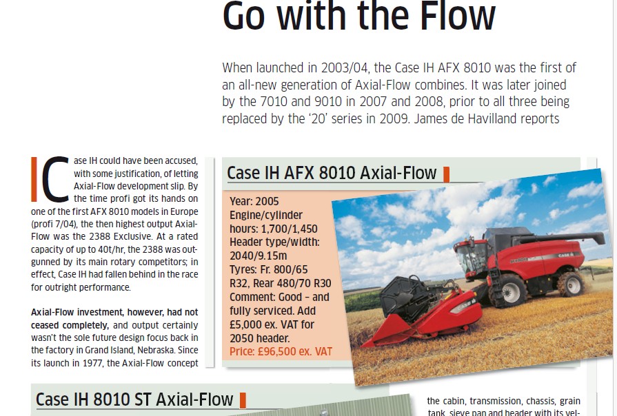 USED MACHINERY: When launched in 2003/04, the Case IH AFX 8010 was the first of an all-new generation of Axial-Flow combines. It was later joined by the 7010 and 9010 in 2007 and 2008, prior to all three being replaced by the ‘20’ series in 2009. James de Havilland reports