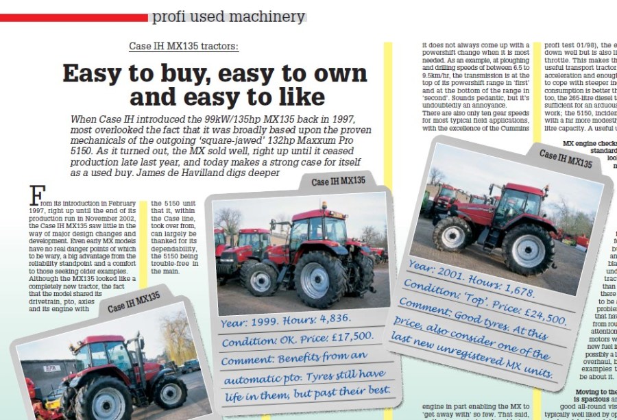 When Case IH introduced the 99kW/135hp MX135 back in 1997, most overlooked the fact that it was broadly based upon the proven mechanicals of the outgoing ‘square-jawed’ 132hp Maxxum Pro 5150. As it turned out, the MX sold well, right up until it ceased production late last year, and today makes a strong case for itself as a used buy. James de Havilland digs deeper