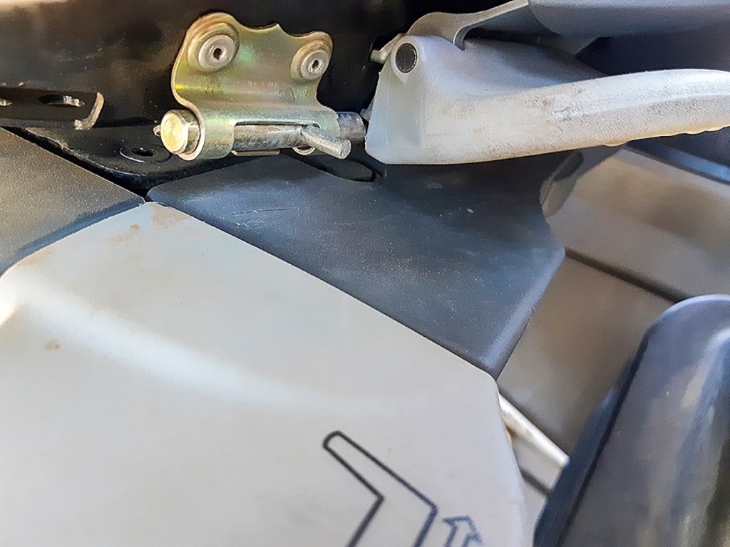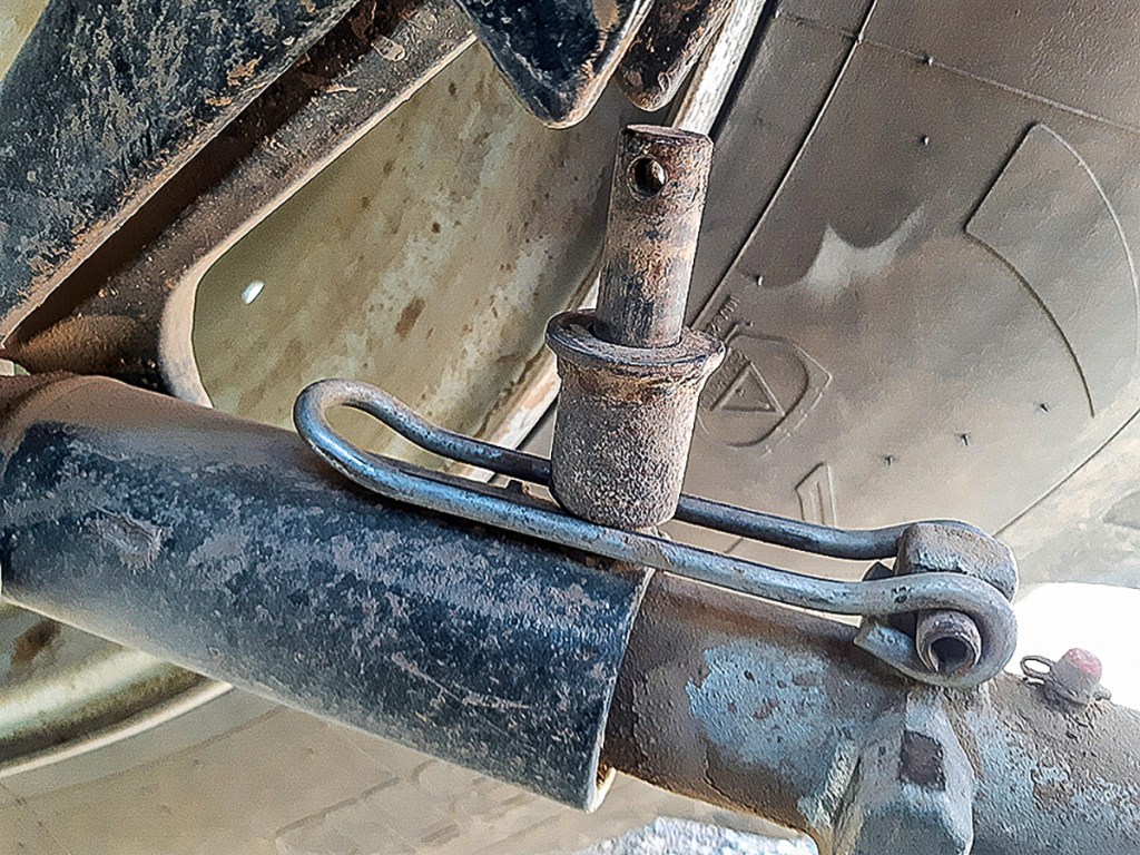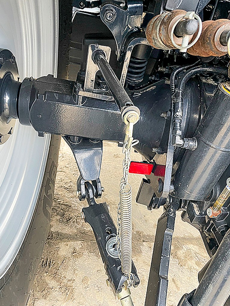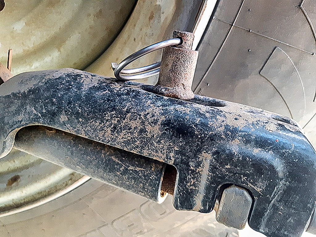 A tab was welded to the front top link so it can be secured horizontally by the same pin used to hold it upright. The top link is now not in the way when opening the bonnet, and it doesn’t stick out, either.