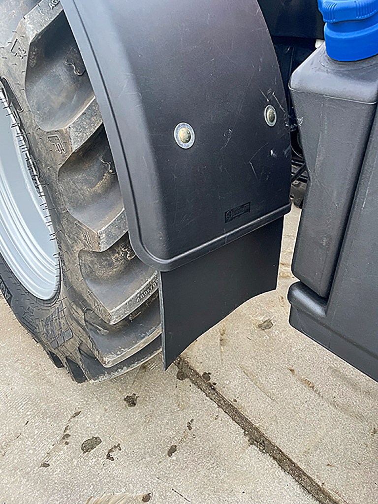 The mudguards on the larger 42-inch rear tyres and 30-inch front tyres were extended with rubber mats to keep the tractor cleaner.