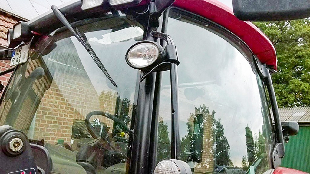 On this Maxxum CVX, the brackets for the lights on the cab grab rails were rotated 180º. This provides much better protection for the lights than the previous position, and the owner also prefers the way they look.