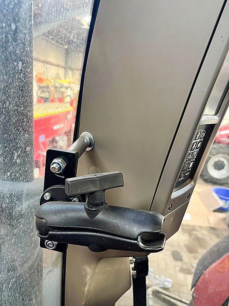 This owner installed a bracket for mounting an additional ISObus screen on the right-hand A-post of his Puma and Maxxum. Two M10 threaded holes are hidden behind the plastic trim for this very job. The position provides an ideal view of the display.