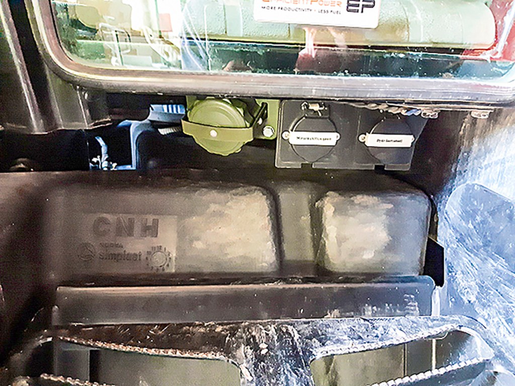 The connectors for the preheater for the engine coolant and for the hydraulic oil are under the cab door on the left. A Nato socket for charging the battery has also been installed.