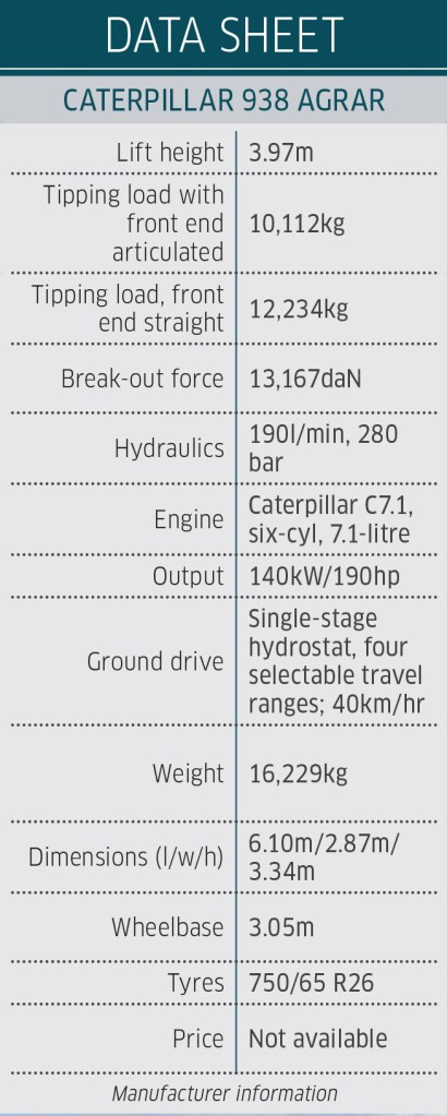 Caterpillar has freshened up its biggest agri-orientated loading shovel, the 938 Ag, which offers a high level of comfort and a number of nice details.