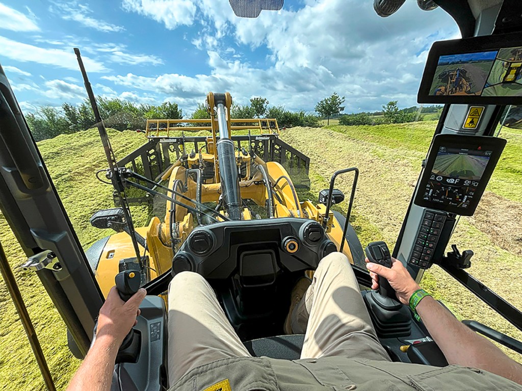 On a silage clamp with a 5.0m folding fork, the 938 Agrar worked without any fuss; the wheels barely spun when hitting the heap. The operator can keep the pedal pressed and utilise the boom’s full power.