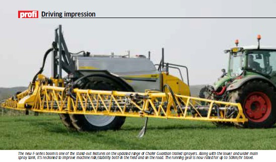 Time stands still for no machinery firm — least of all sprayer makers, which operate in a sector where technical developments proceed apace… and then some. Typical of the breed, Lincs-based Chafer Machinery may have built its reputation on no-frills liquid fertiliser applicators, but it’s now as high tech as the best of the rest of the European sprayer maker pack. Proving the point are the latest features that adorn the new generation of Guardian and Sentry models. To summarise, new Guardian and Guardian ‘e’ are available with tank sizes of 3,000-, 3,500- and 4,000 litres and three F-series boom widths of 12/24m twin-fold, 12/24/ 28m tri-fold and 12/24/30m tri-fold.