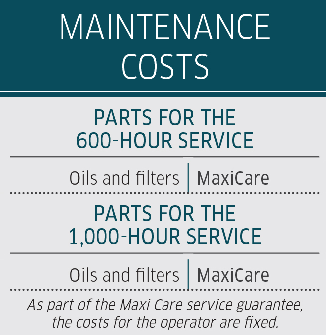 After clocking more than 4,900 hours, the owner’s first niggles relate to fuel: the 455- litre fuel tank is too small; and the driver shouldn’t rely on the fuel gauge as it doesn’t always truly reflect the actual diesel level in the two tanks — one left, one right. A much safer bet is to glance at the screen, which will tell you how much work you can still do before you’re in trouble.