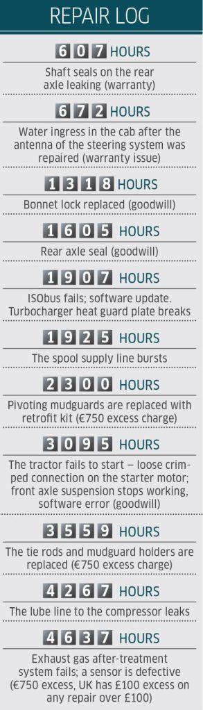 Apart from the front mudguards working their way loose, there’ve been no recurring problems in the near four years it has been in the fleet. However, breakdowns such as the burst hydraulic pipe and leaking shaft seals on the axle have blotted its otherwise decent health record.