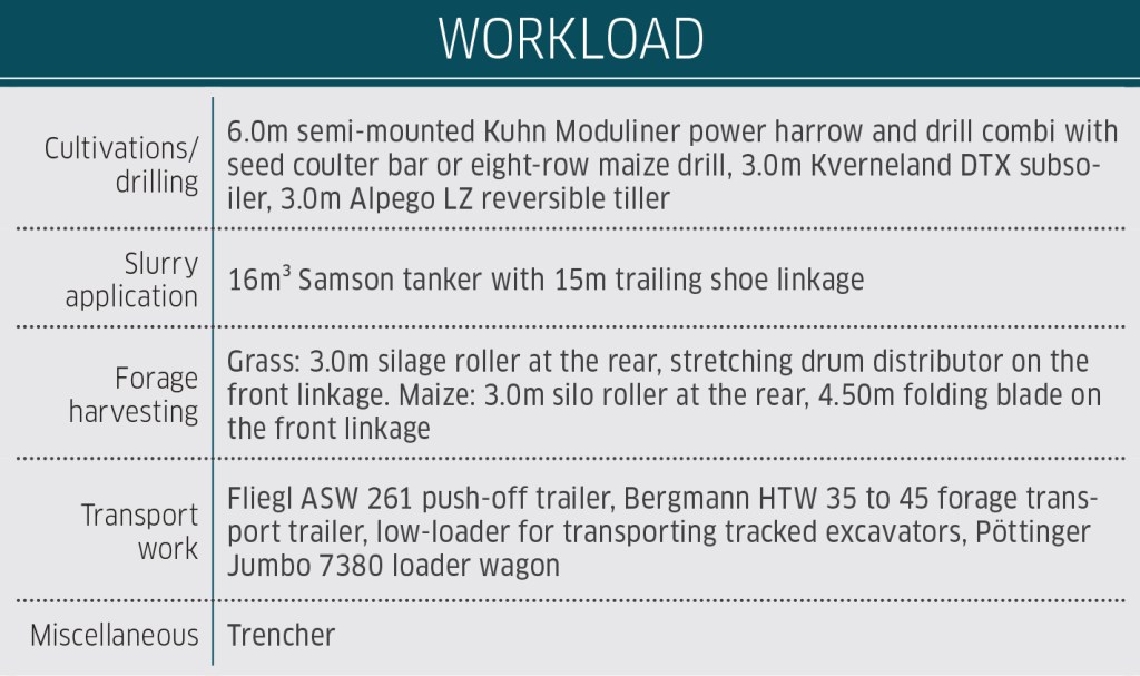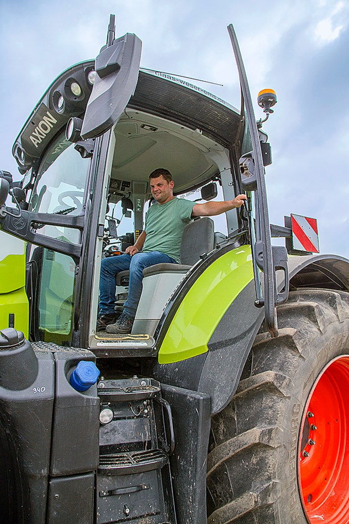 This is the prime mover in the fleet, running alongside another 870 and a smaller Axion 810 plus several Fendts in Wesermarsch, northern Germany. The 420-hectare farm also operates a biogas plant, so, due to the workload, the owner opted for the Maxi-Care maintenance and service plan, hiring the Axion from his local dealer for 7,500 hours at a fixed hourly rate. This will help to manage risk and fix costs over the 7,500 hours/five years the test tractor is expected to stay here.