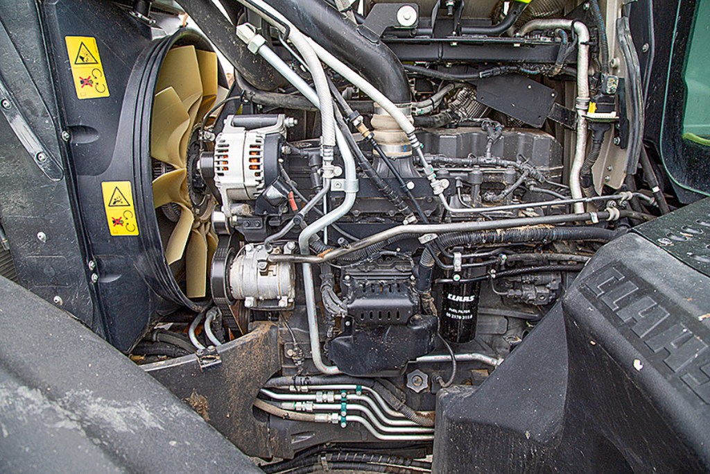The Axion’s engine oil is changed every 600 hours and then a major service including a transmission oil change is at every 1,200 hours. Because the business opted for the dealer’s Maxi-Care service as part of the 7,500-hour hire agreement, there are no additional maintenance costs apart from the fixed hourly rate. In Germany, Claas offers a warranty with a deductible €750 excess on any repairs that exceed €750. Here in the UK, it is a £100 excess on any repairs exceeding £100.