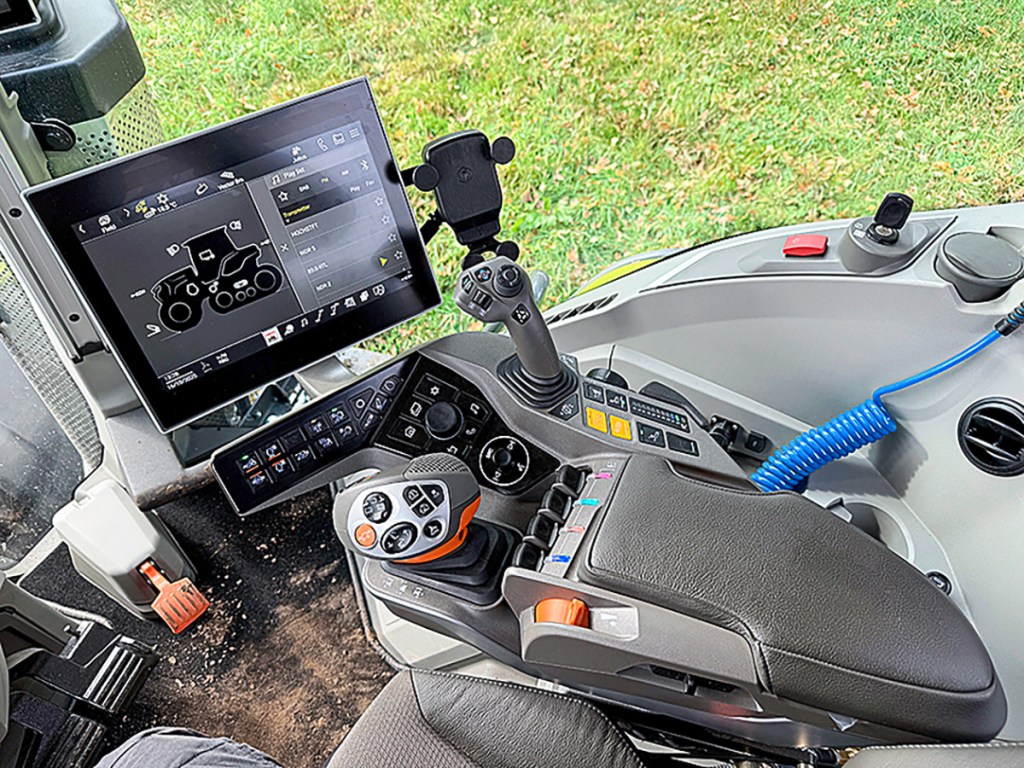 The new cross lever on the armrest offers even more possibilities: up to 30 ISObus functions can be operated here across three levels. Claas has also finally done away with the fixed rotary switches, for example, for the lift settings. Quick access buttons now provide direct access to the main setting levels for the lift, hydraulics, transmission, etc.