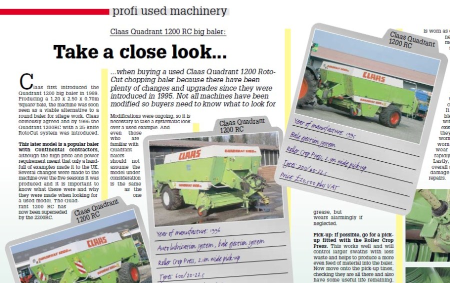 USED MACHINERY…when buying a used Claas Quadrant 1200 Roto- Cut chopping baler because there have been plenty of changes and upgrades since they were introduced in 1995. Not all machines have been modified so buyers need to know what to look for