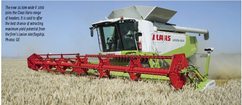Claas V 1050 header: Claas could hardly have got its timing better. Just as the smaller UK arable farmer decides to return to the new combine market, the harvester manufacturer introduces a range of machines, the Tucano, that is aimed squarely at this size of grower. More luck than judgement, perhaps, but there it is. At the tail end of last harvest we tucked a Tucano 450 model into a crop of triticale