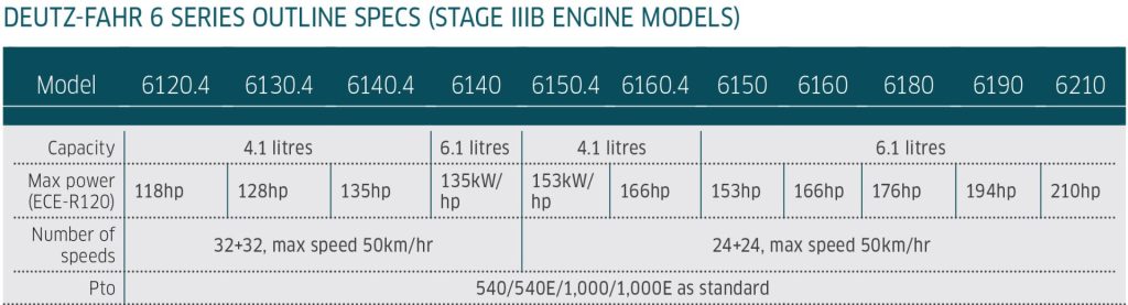 Deutz-Fahr is among the smaller players in terms of sales in the UK and Ireland. As a sweeping generalisation, a 6 Series or Series 6 of any vintage can make a decent used buy, four-cylinder models typically being harder to find. Pricing is also a bit harder because these are ‘premium’ quality models that will have sold new with a high ‘basic’ specification. You also need to consider a tractors condition and past care, as is the case with any make of model. If one of these models piques your interest it is well worth getting in touch with your local Deutz dealer to find out what is on offer.