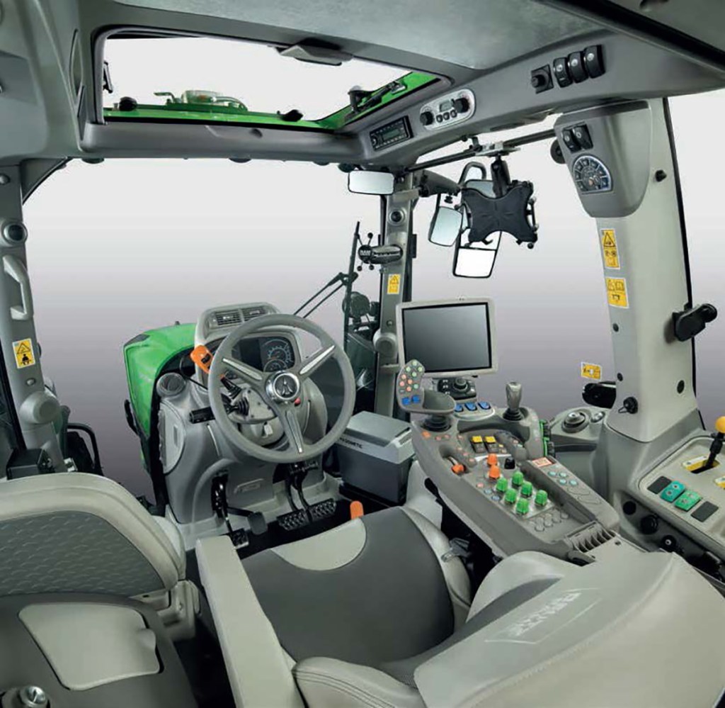 Structurally, the cab of gen one models is pretty much the same as the Agrotron M. It offers good visibility and decent levels of comfort. Downsides are noise levels, which came in at a vocal 76dB(A) in our tests with less than stellar cooling output from the air conditioning system. There is no climate control on these earlier tractors. Stage IV tractors get a cab upgrade to MaxiVision2. The earlier version of this was fitted to previous TTV models. The key change from gen one is the introduction of a space between the cab and the rear of the bonnet. This makes a big difference to noise levels in the cab. The air conditioning received a boost to make it more effective.