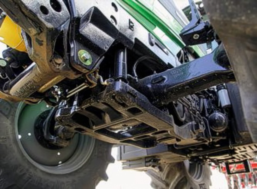 The Dana suspended front axles on gen one tractors have less travel than the later models. The latter ride better, particularly at higher transport speeds. It is easy to spot the difference, the suspension rams on later gen two and three models mounting ahead of the axle. Front axle brakes and suspension are pretty much a default fit but always check as both rigid and unbraked axles are available.