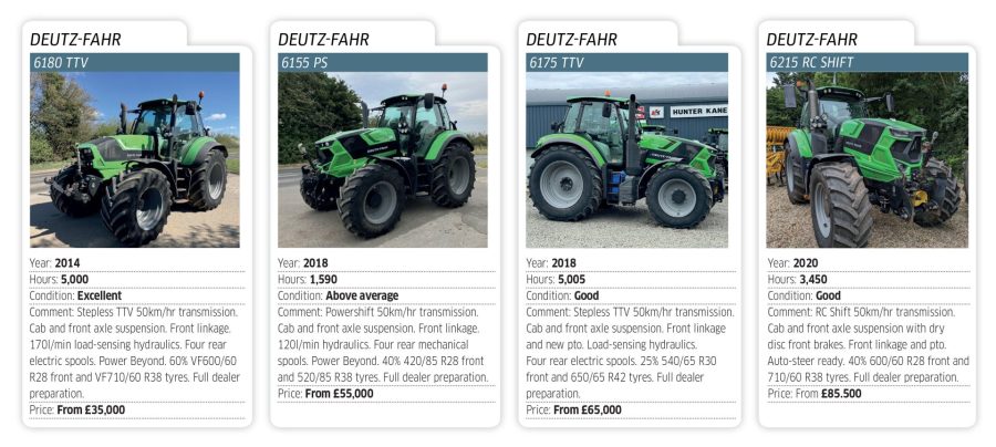 Deutz-Fahr is among the smaller players in terms of sales in the UK and Ireland. As a sweeping generalisation, a 6 Series or Series 6 of any vintage can make a decent used buy, four-cylinder models typically being harder to find. Pricing is also a bit harder because these are ‘premium’ quality models that will have sold new with a high ‘basic’ specification. You also need to consider a tractors condition and past care, as is the case with any make of model. If one of these models piques your interest it is well worth getting in touch with your local Deutz dealer to find out what is on offer.