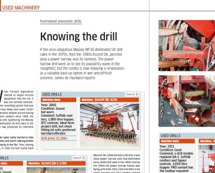 USED MACHINERY: If the once ubiquitous Massey MF30 dominated UK drill sales in the 1970s, then the 1980s Accord DA, perched atop a power harrow, was its nemesis. The power harrow drill went on to…