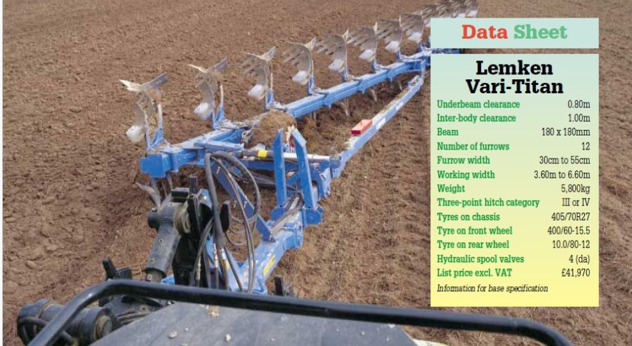 Reversible ploughs are getting bigger, with articulated frames and a seemingly endless number of bodies, too. German maker Lemken is the latest to join the big league adding the Vari-Titan semimounted reversible to its range. We tested the 12-furrow version – a 5.8t mother of a plough which turns over 6.6m of soil with each pass.