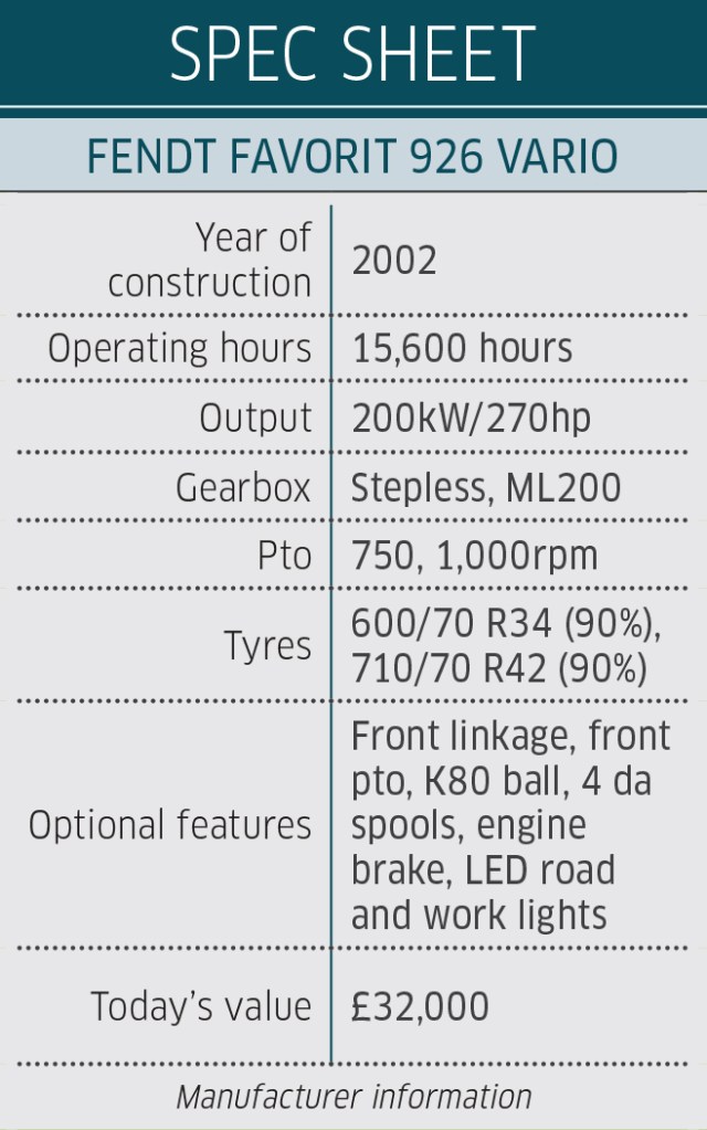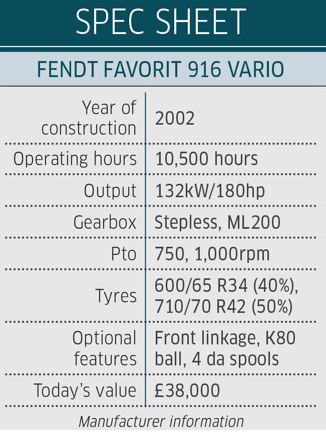 Due to the short three-year production run, these particular 900s are scarce on the used market. Decent Fendt 916 or 920 machines with more than 10,000 operating hours start at around £38,000+. If you’re looking for a 926 with a reasonable level of specification, like that owned by Axel Schnackenberg, the price will quickly exceed £35,000.