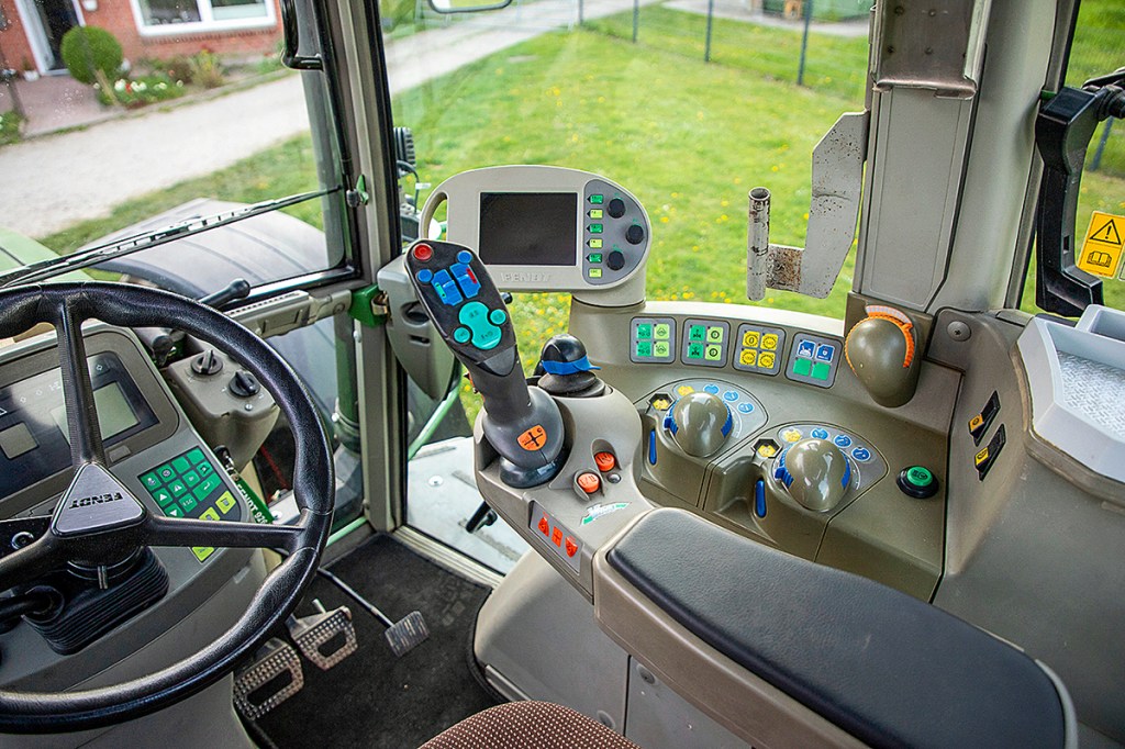 But it wasn’t just natty exterior styling they shared; the 900s also gained the same multi-function armrest with the drive stick with Go and End buttons, plus the familiar colour VarioTerminal display. However, it didn’t have the Tractor Management System or TMS, which introduced automatic engine-gearbox control. You used the foot pedal to accelerate and controlled the transmission from the drive lever.